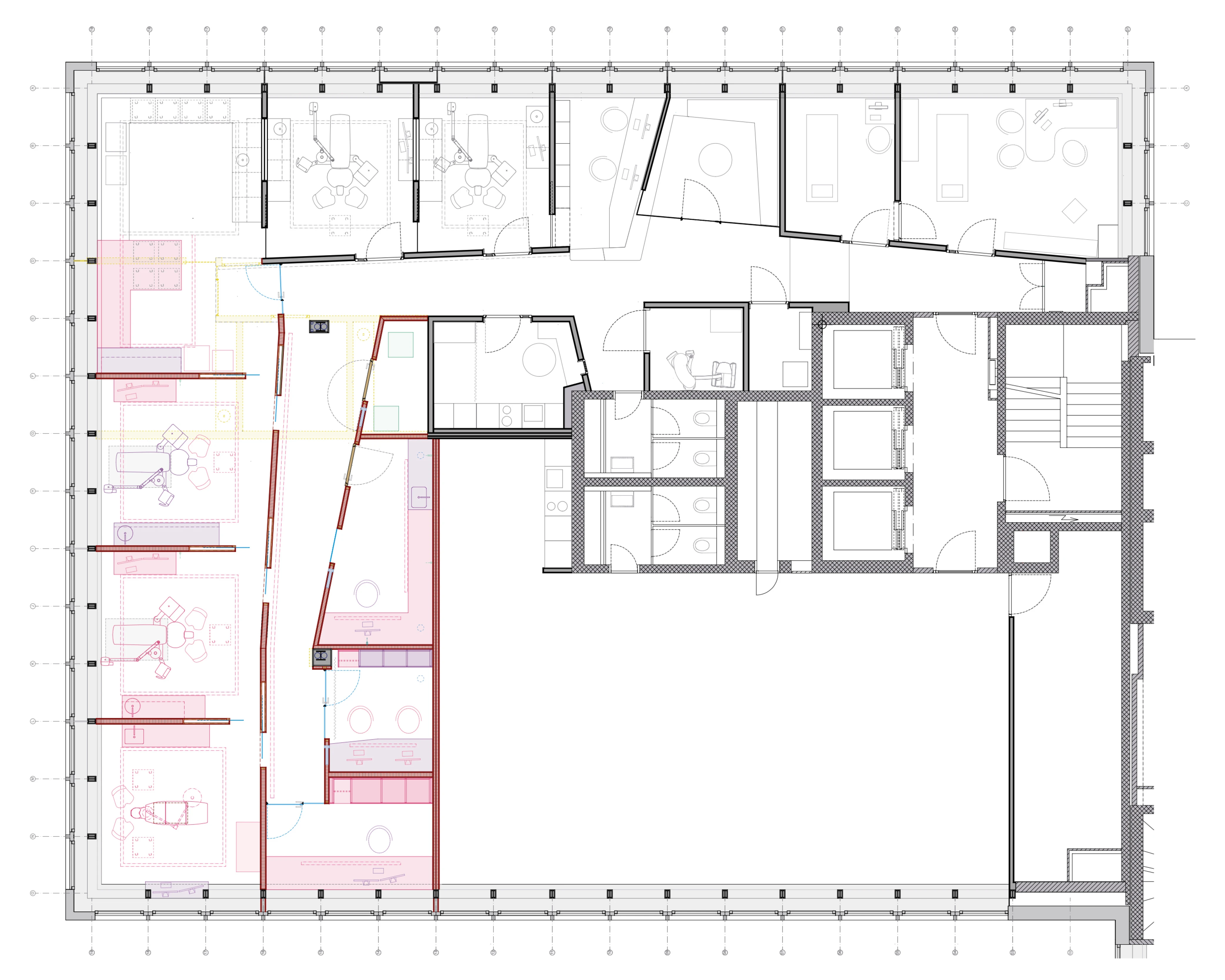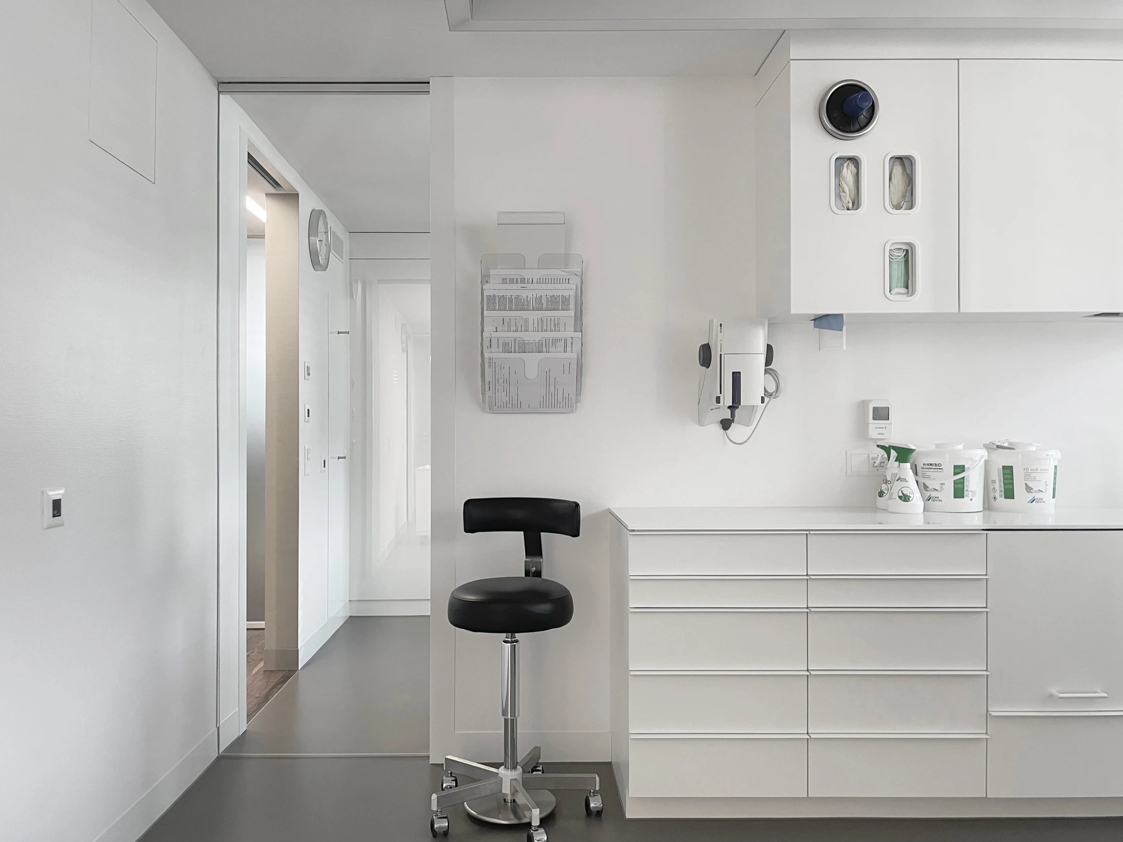 2017/18 plante und erweiterte das Büro Jeanette Geissmann Architektur die Arztpraxis Thun & Zahnmedizin Roza. Aufgrund der hohen Patientenzahl und um gleichzeitig das Ärzteteam erweitern zu können, entschied sich Dr. Roza für eine Erweiterung der gemieteten Räumlichkeiten. Ab April 2023 wird die Praxis ihre Patientinnen und Patienten in drei neuen Behandlungszimmern betreuen und mehr Platz für die Arbeit des Praxisteams bieten: neues Büro, Labor, Steri, Technikraum. Dr. Rozas Wunsch war es, möglichst viele Möbel aus dem abgebrochenen alten Praxisteil in die neu geplanten Räume zu integrieren.